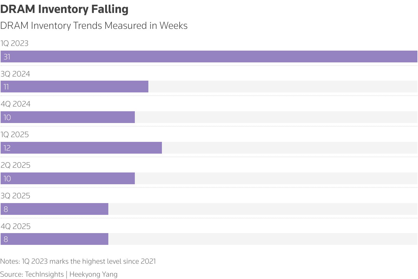 The AI frenzy is driving a memory chip supply crisis - An acute global shortage of memory chips is forcing artificial intelligence and consumer-electronics companies to fight for dwindling supplies, as prices soar for the unglamorous but essential components that allow devices to store data.